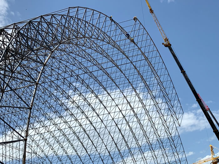 (2)网架加工前应对现场尺寸进行复测,确认无误后方可进行加工、安装;网架制作、运输、安装应遵守《空间网格结构技术规程》JGJ7-2010、《钢网架三明螺栓球节点》JG/T 10-2009、《钢网架三明螺栓球节点用高强度螺栓》 GB/T 16939-2016、《三明钢结构三明工程三明施工规范》 GB50755-2012、《三明钢结构三明工程三明施工质量验收标准》 GB50205-2020。